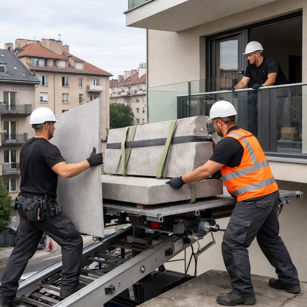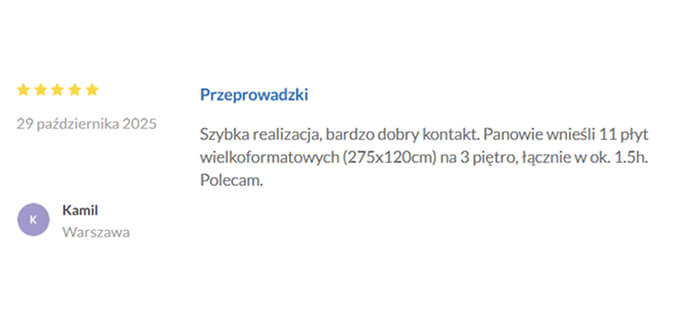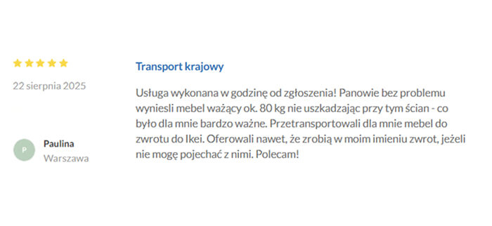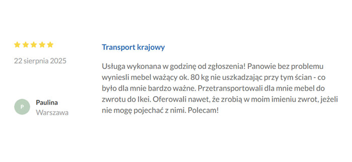 O wskazanej godzinie przyjeżdża samochód z ekipą. Ostrożnie ładujemy, przewozimy i rozładowujemy.